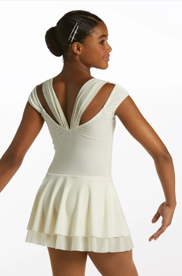 - Velvet top skirt over mesh with attached briefs