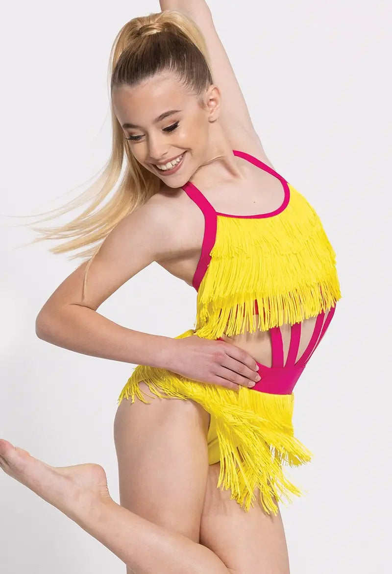 - Halter-style dress with tiered fringe